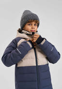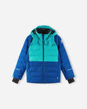 Sporty, water-repellent skiing jacket for kids, also cool in the city. Can be connected to skiing pants with a loop in the snowlock. Straight cut.