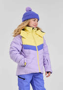 Sporty, water-repellent skiing jacket for kids, also cool in the city. Can be connected to skiing pants with a loop in the snowlock. Shaped cut.